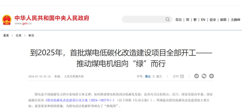 《煤电低碳化改造建设行动方案(2024—2027年)》